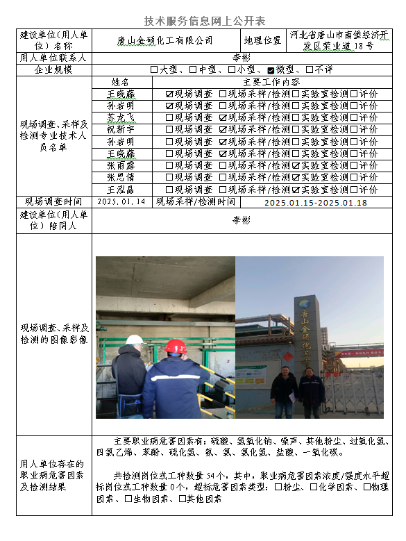 2025年唐山金硕化工有限公司定期检测