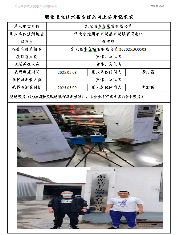 2025年东光县丰弘塑业有限公司定期检测网上公示