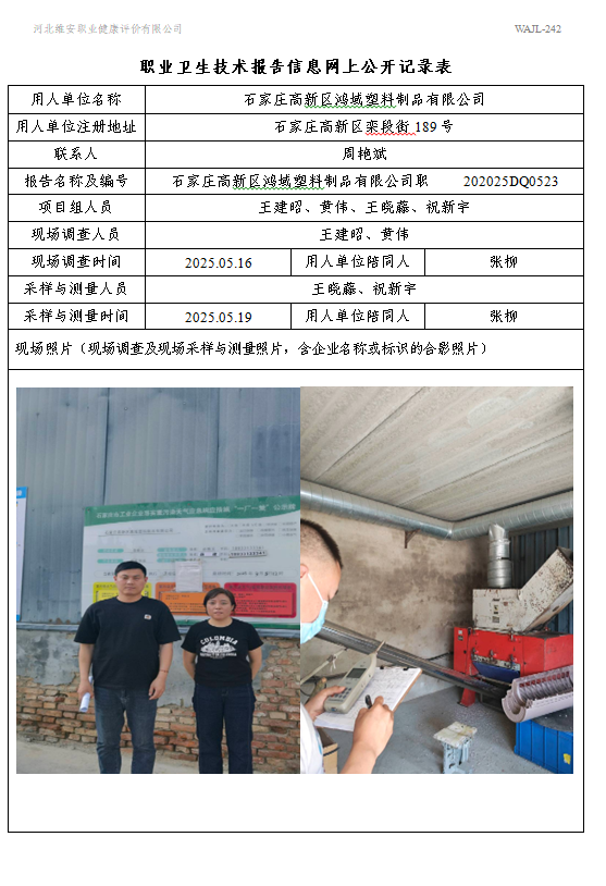 2025年石家庄高新区鸿域塑料制品有限公司定期检测网上公示