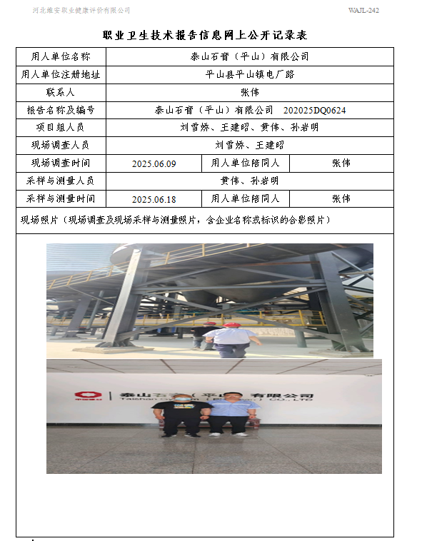 2025年泰山石膏(平山)有限公司定期检测网上公示