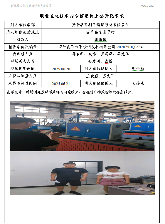 2025年安平县百利不锈钢线材有限公司定期检测网上公示
