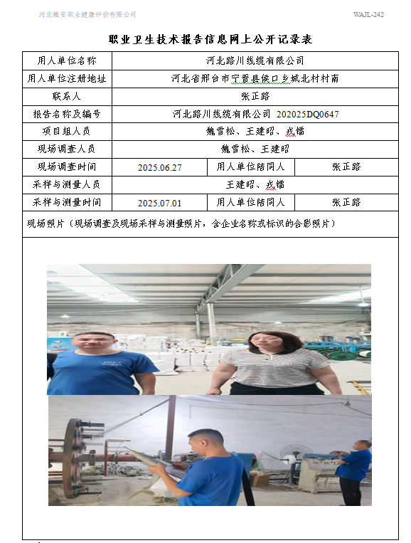 2025年河北路川线缆有限公司定期检测网上公示