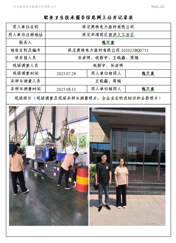 2025年保定奥特电力器材有限公司定期检测网上公示