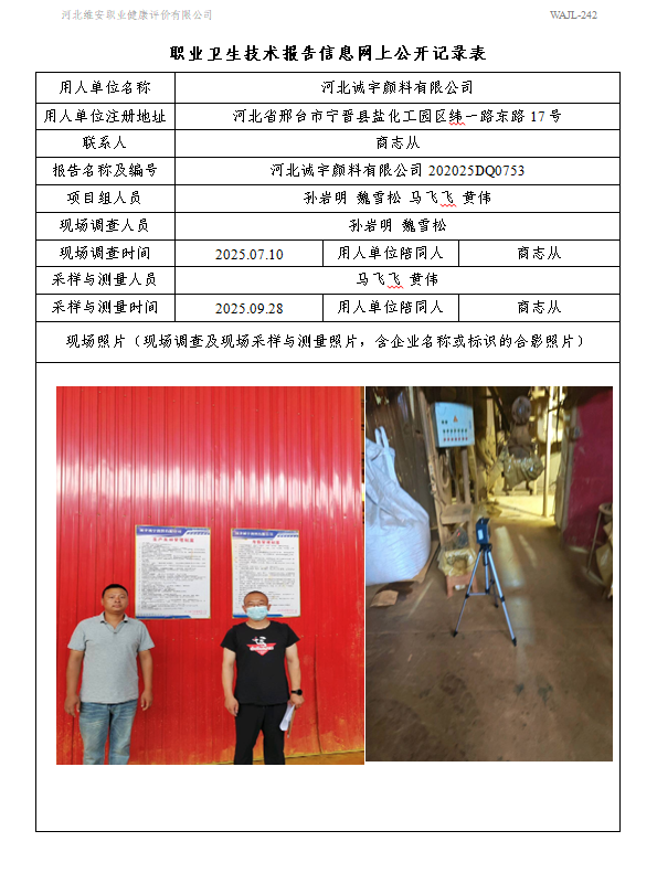 2025年河北诚宇颜料有限公司定期检测网上公示