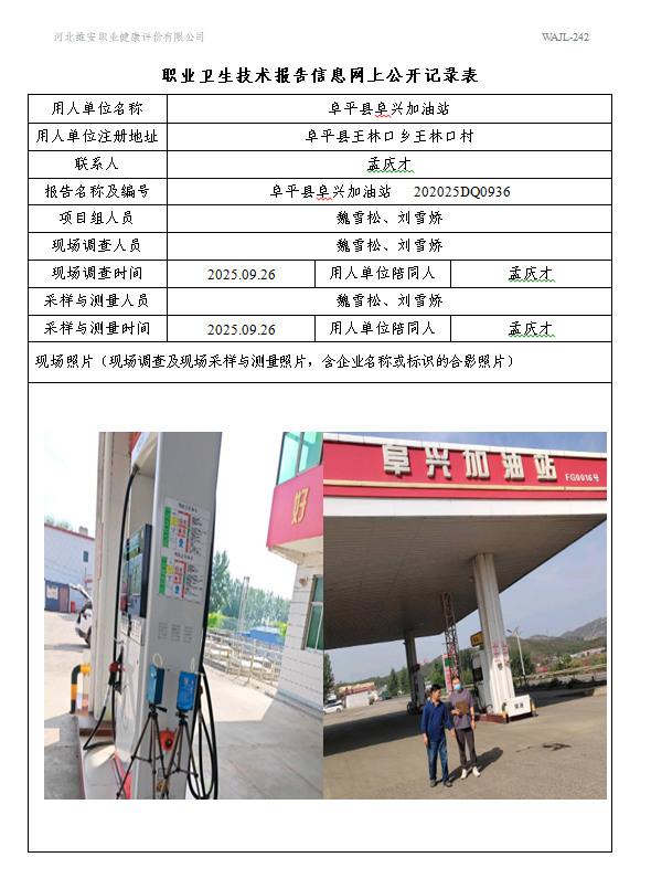 2025年阜平县阜兴加油站定期检测网上公示