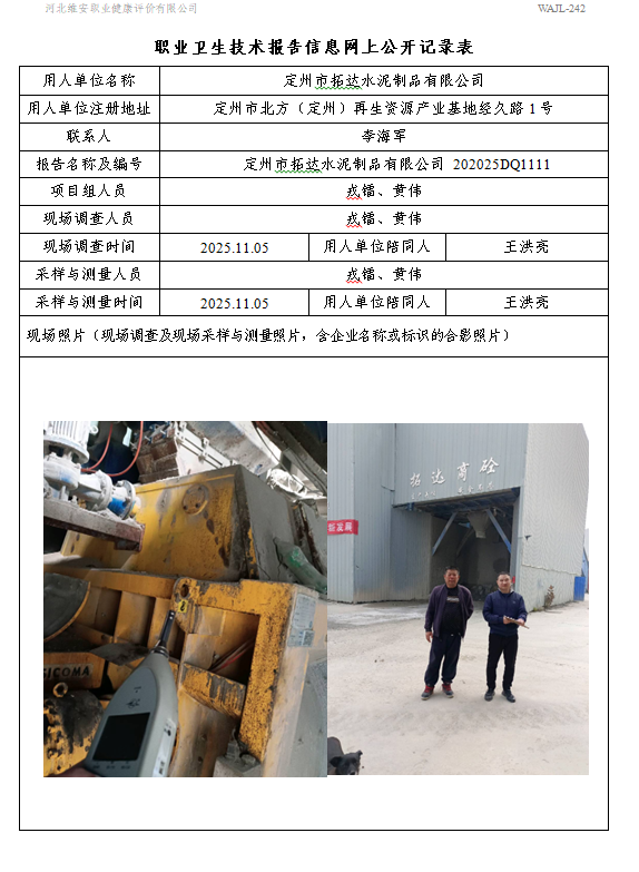2025年定州市拓达水泥制品有限公司定期检测网上公示