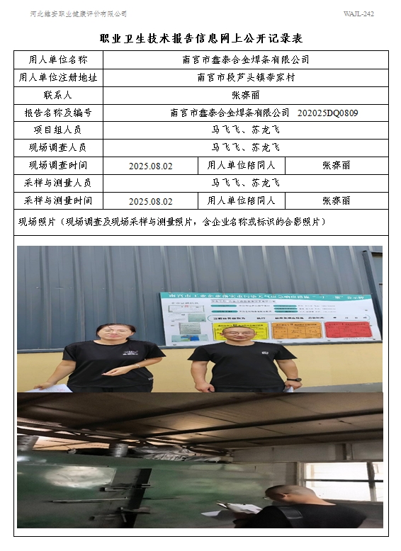 2025年南宫市鑫泰合金焊条有限公司定期检测