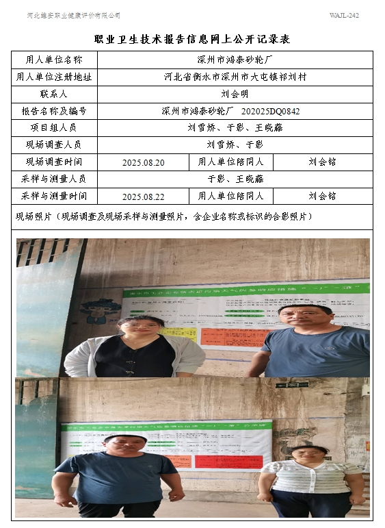 2025年深州市鸿泰砂轮厂定期检测
