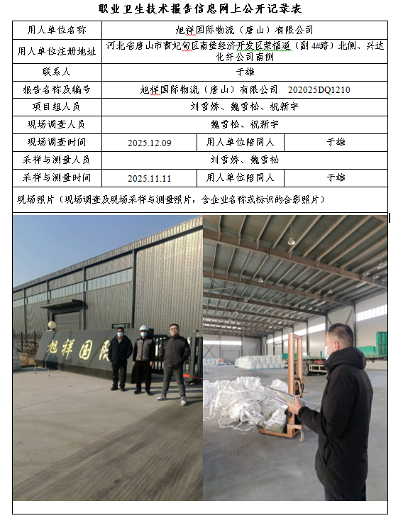 2025年旭祥国际物流(唐山)有限公司定期检测网上公示