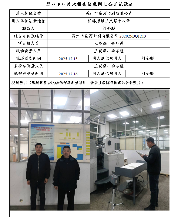 2025年涿州市星河印刷有限公司定期检测网上公示