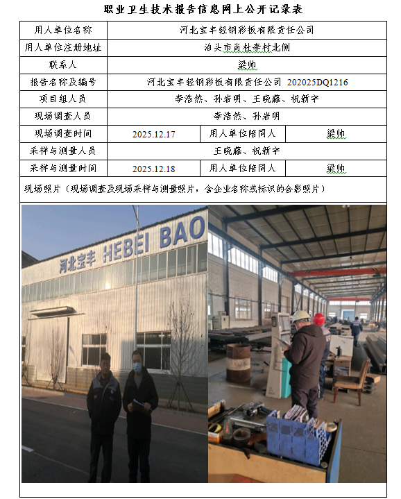 2025年河北宝丰轻钢彩板有限责任公司定期检测网上公示