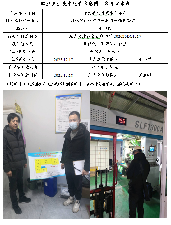 2025年东光县北徐复合彩印厂定期检测网上公示