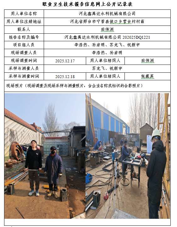 2025年河北鑫禹达水利机械有限公司定期检测网上公示